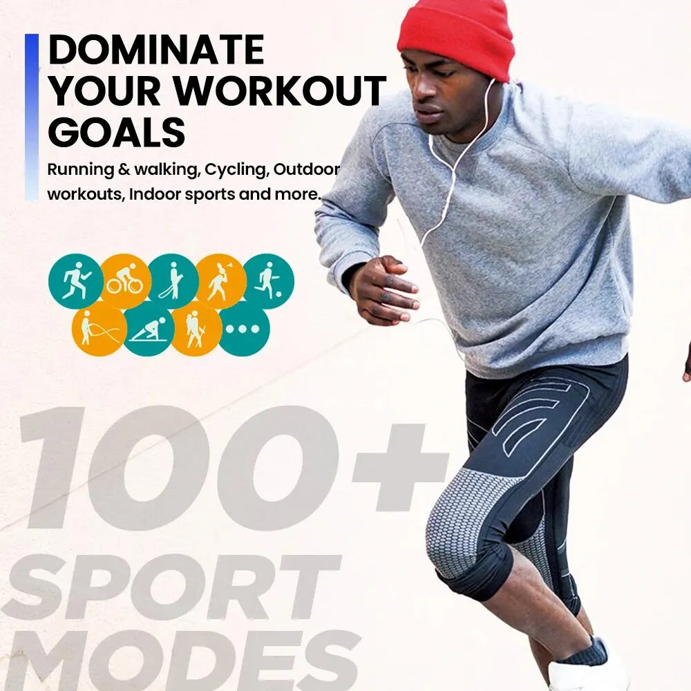 【More Options, More Motives】The Zeblaze Btalk Plus fitness watch has 100+ sports modes, allowing you to get data for all your favorite sports, like walking, running, and cycling, as well as more free-form workouts like strength training, yoga, and more.